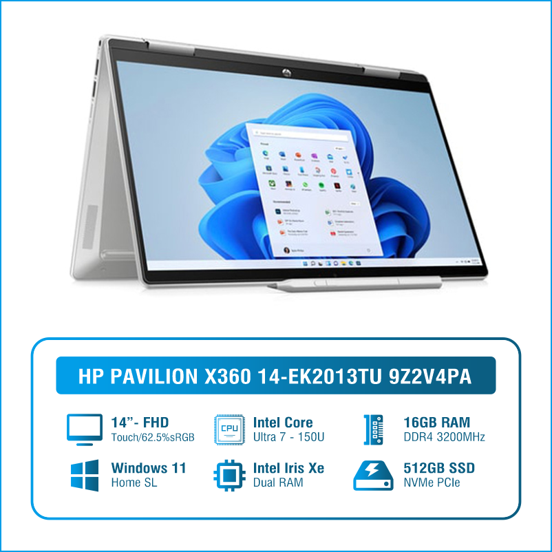 - Laptop HP Pavilion x360 14-ek2013TU (9Z2V4PA) là sự lựa chọn hoàn hảo cho người dùng cần một chiếc laptop đa năng, linh hoạt, hiệu năng mạnh mẽ và thiết kế thời trang.