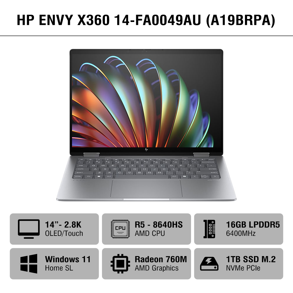 HP Envy x360 14-fa0049AU không chỉ chinh phục người dùng bằng thiết kế 2 trong 1 thời thượng mà còn ghi điểm với hiệu năng mạnh mẽ, màn hình OLED chất lượng cao và thời lượng pin ấn tượng. Đây chính là dòng laptop văn phòng tầm giá 20 triệu đồng đáng sở hữu dành cho dân văn phòng, sinh viên và người dùng yêu thích sự linh hoạt trong công việc.