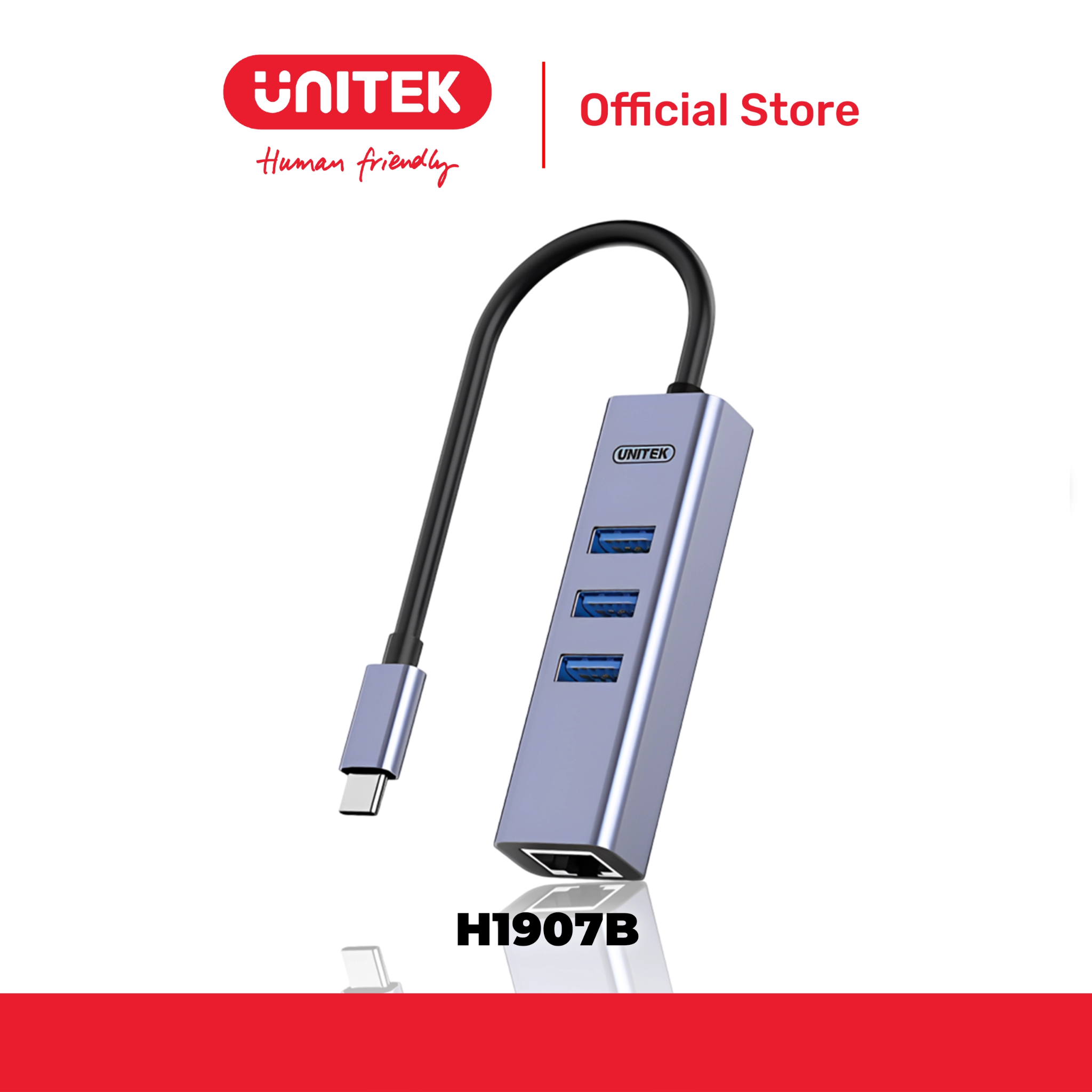 - Bộ chuyển đổi UNITEK H1907B là thiết bị mở rộng cổng Type-C, giúp người dùng dễ dàng kết nối nhiều thiết bị ngoại vi và mạng LAN có dây.