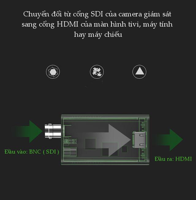 Sử dụng để chuyển đổi tín hiệu từ chuẩn BNC (SDI) sang HDMI cho tín hiệu của camera, giúp các bạn có thể thưởng thức hình ảnh chất lượng HDTV, cũng đáp ứng cao về âm thanh kỹ thuật số, cải thiện tín hiệu tốt hơn với độ phân giải lên đến 1080p