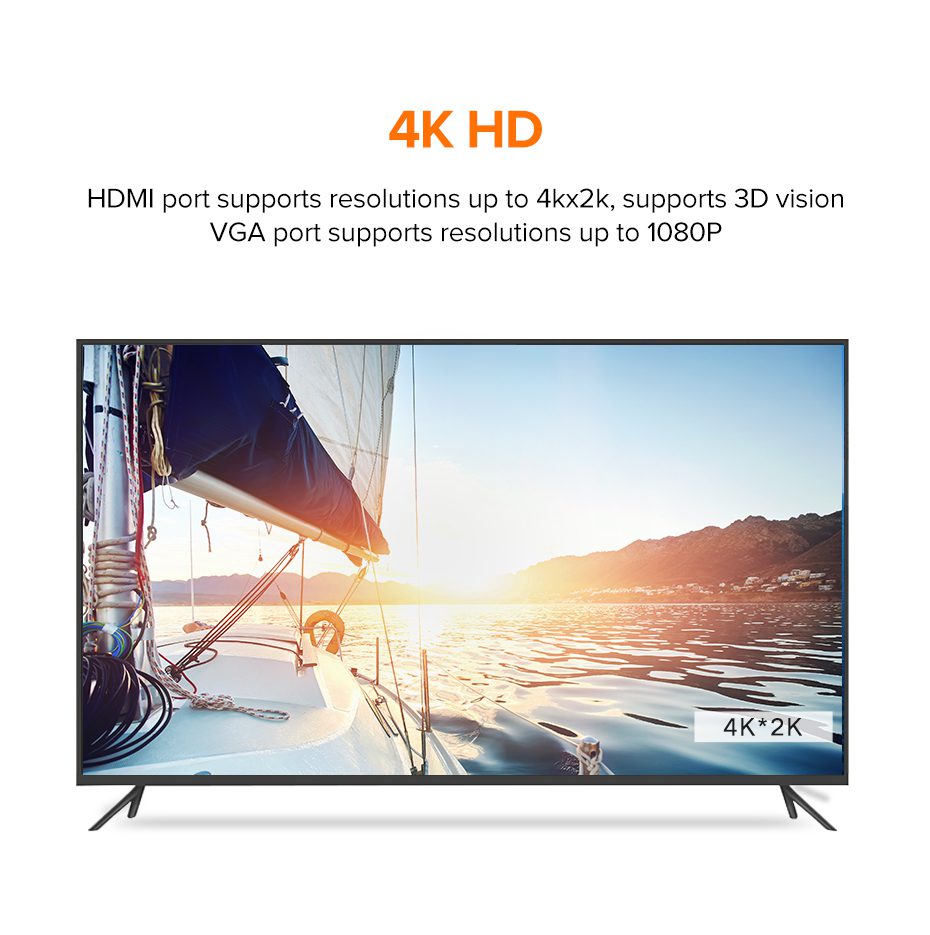 - Độ Phân Giải Cao: Hỗ trợ độ phân giải 4K UHD (3840×2160) ở tần số 30Hz qua HDMI và Full HD (1920×1080) ở tần số 60Hz qua VGA, mang lại hình ảnh sắc nét và sống động.