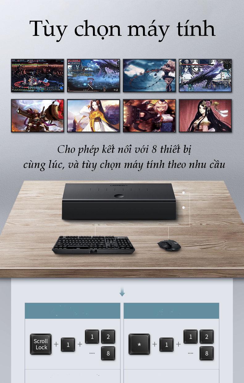 - Điều khiển chỉ với 1 bộ chuột và bàn phím ra 8 thiết bị máy tính (1 người điều khiển 8 máy chơi game)