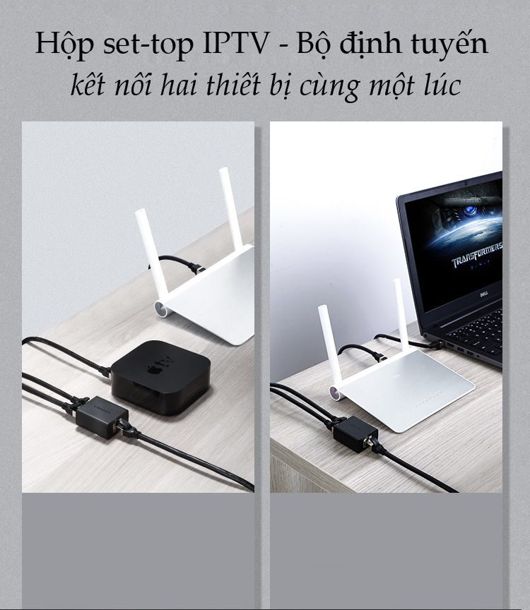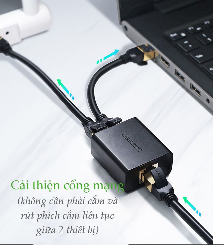 - Đầu chia LAN RJ45 1 ra 2 Ugreen 50923, giải pháp hiệu quả để giải quyết vấn đề thiếu cổng kết nối RJ45 cho hộ gia đình, văn phòng…