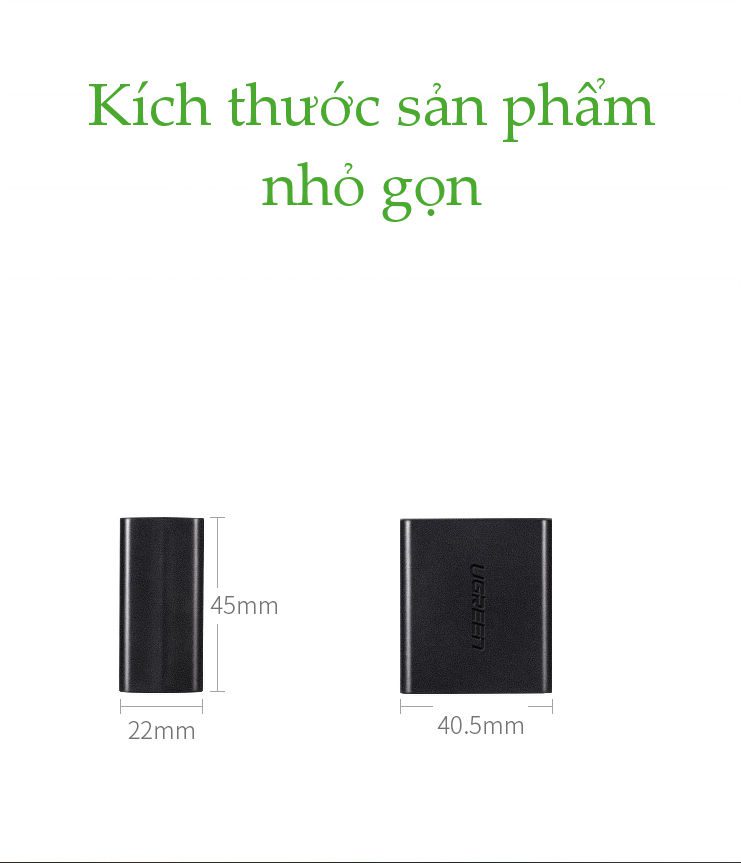 - Đầu chia LAN RJ45 1 ra 2 Ugreen 50923 có thiết kế nhỏ gọn, độ gia công hoàn thiện cao. Sản phẩm được làm bằng chất liệu nhựa ABS cao cấp chống bám vân tay và hạn chế trầy xước.