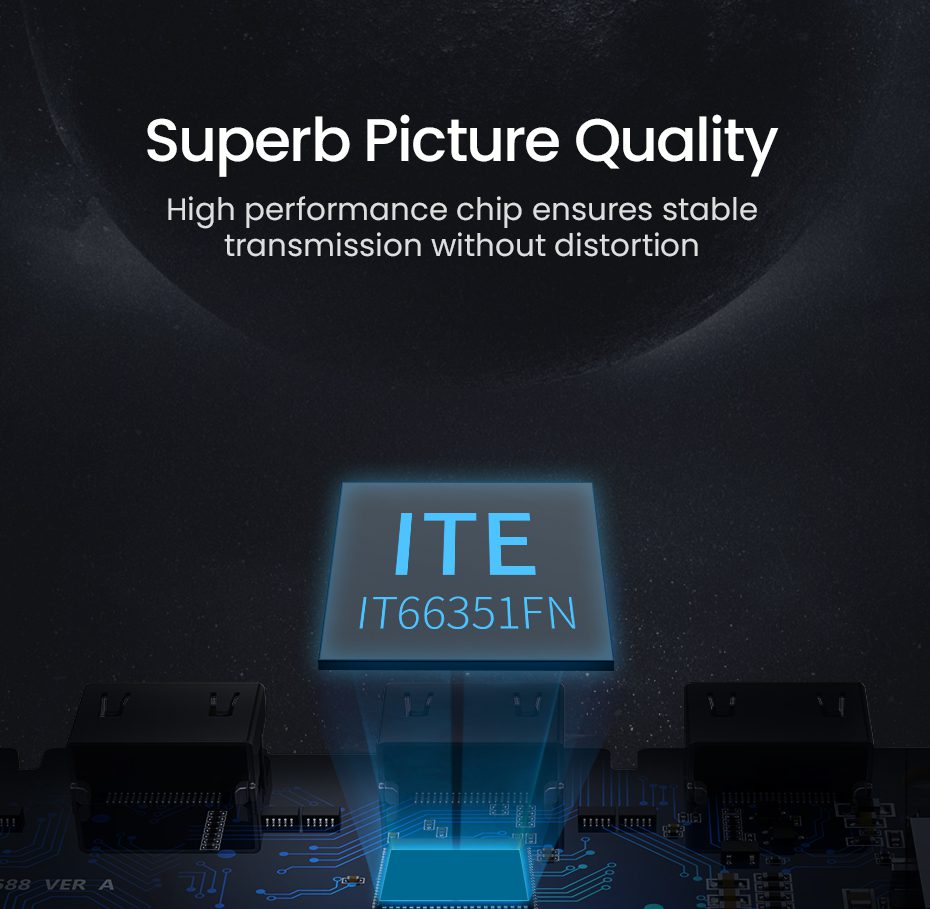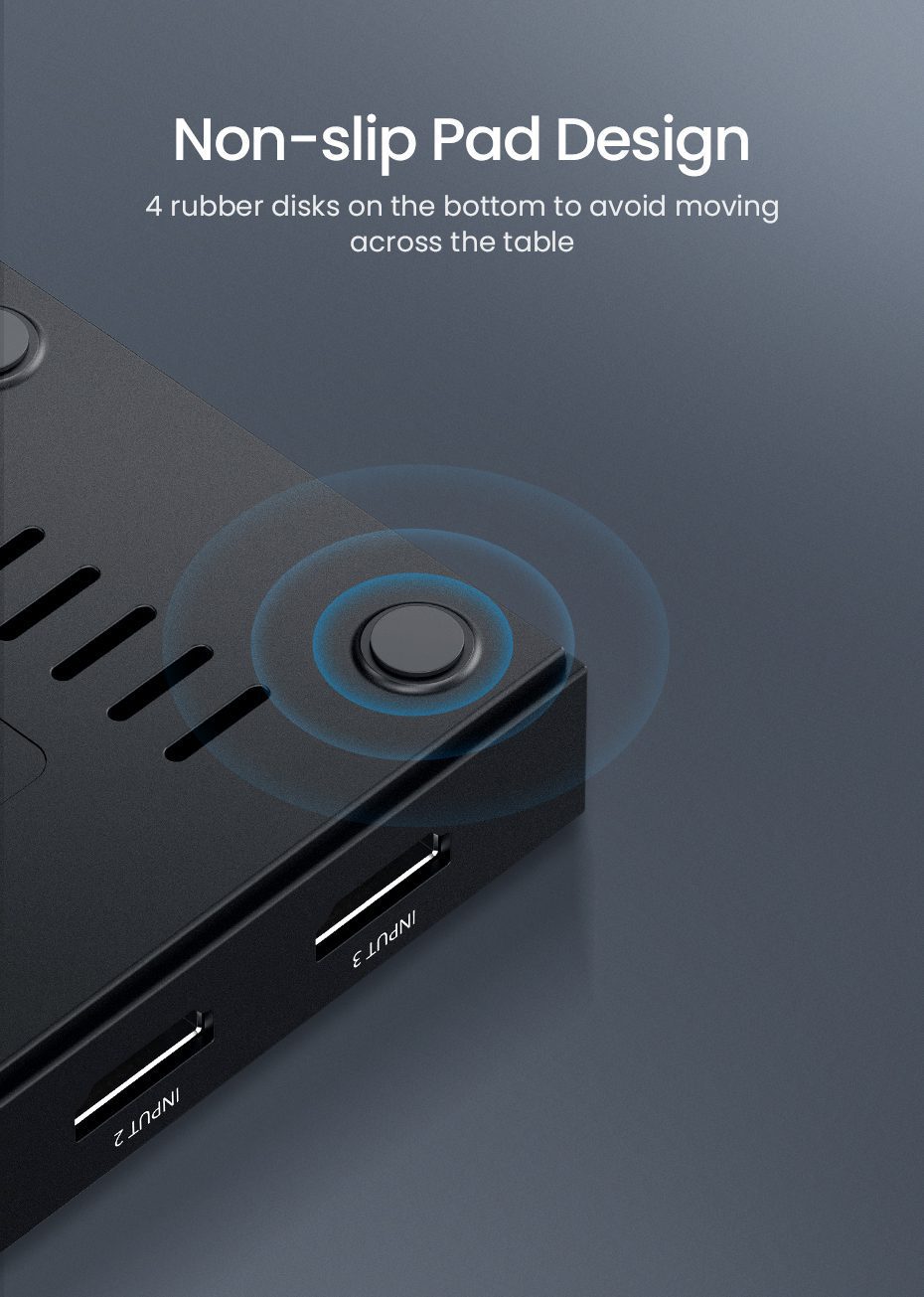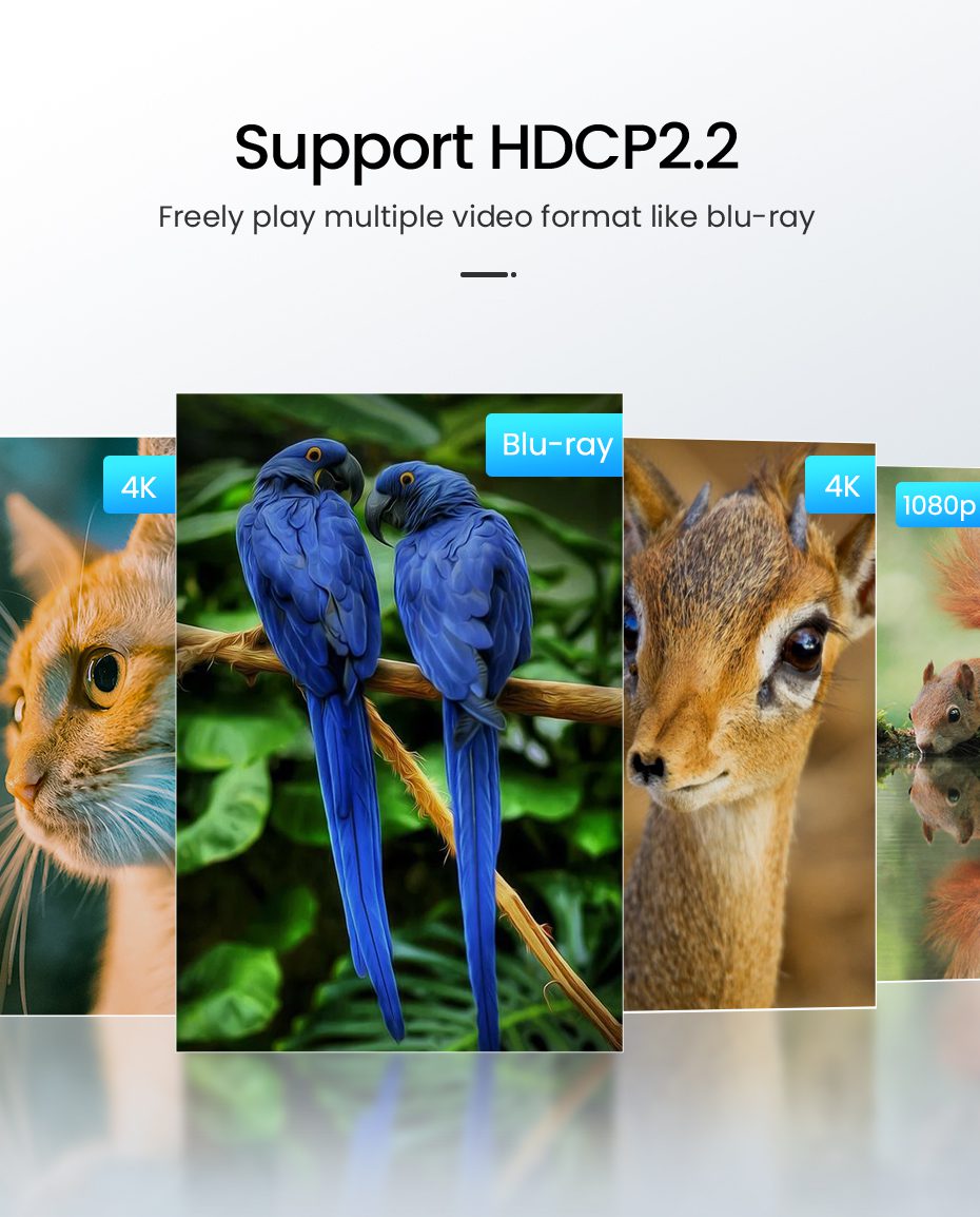 UGREEN CM188 cung cấp 3 cổng vào HDMI (chuẩn HDMI 2.0a, HDCP 2.2) và 1 cổng ra HDMI, hỗ trợ độ phân giải tối đa 3840×2160@60Hz. Thiết bị tương thích ngược với các độ phân giải như 2560×1440@60Hz, 1920×1080@120Hz/240Hz, mang đến trải nghiệm hình ảnh sắc nét và mượt mà. - Hỗ trợ định dạng video và âm thanh cao cấp