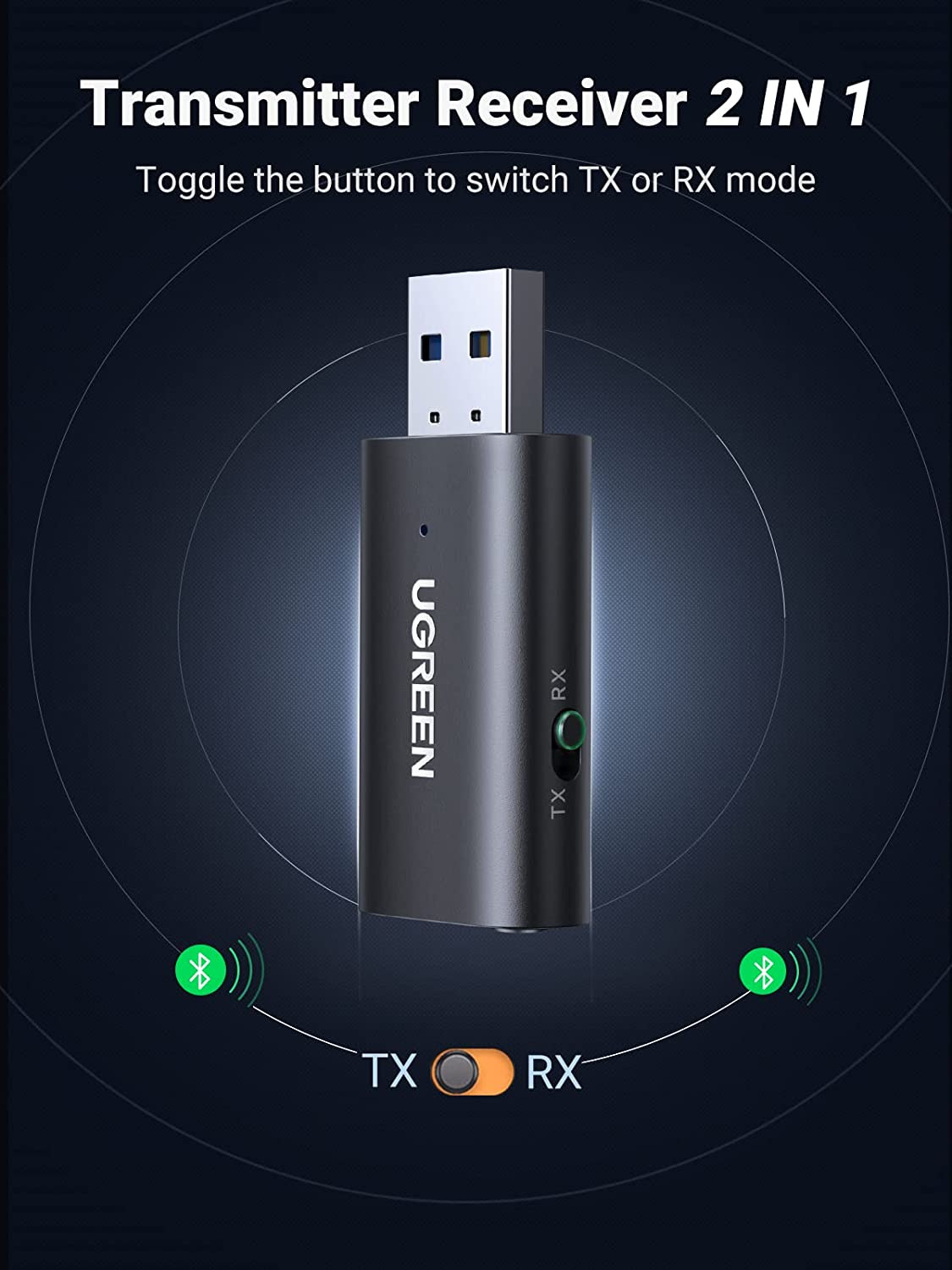 Bộ phát và nhận Bluetooth 5.1 2in1 UGREEN 60300 hỗ trợ chế độ TX và RX