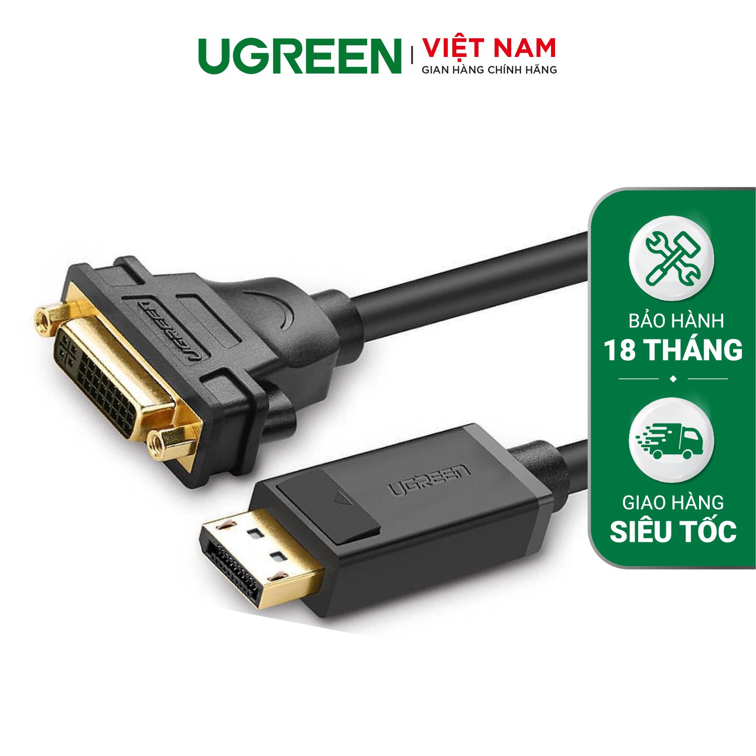 Cáp chuyển đổi DisplayPort (20 pin) cổng đực sang DVI-I (24+5) cổng cái dài 15CM 20405 là sản phẩm chính hãng UGREEN