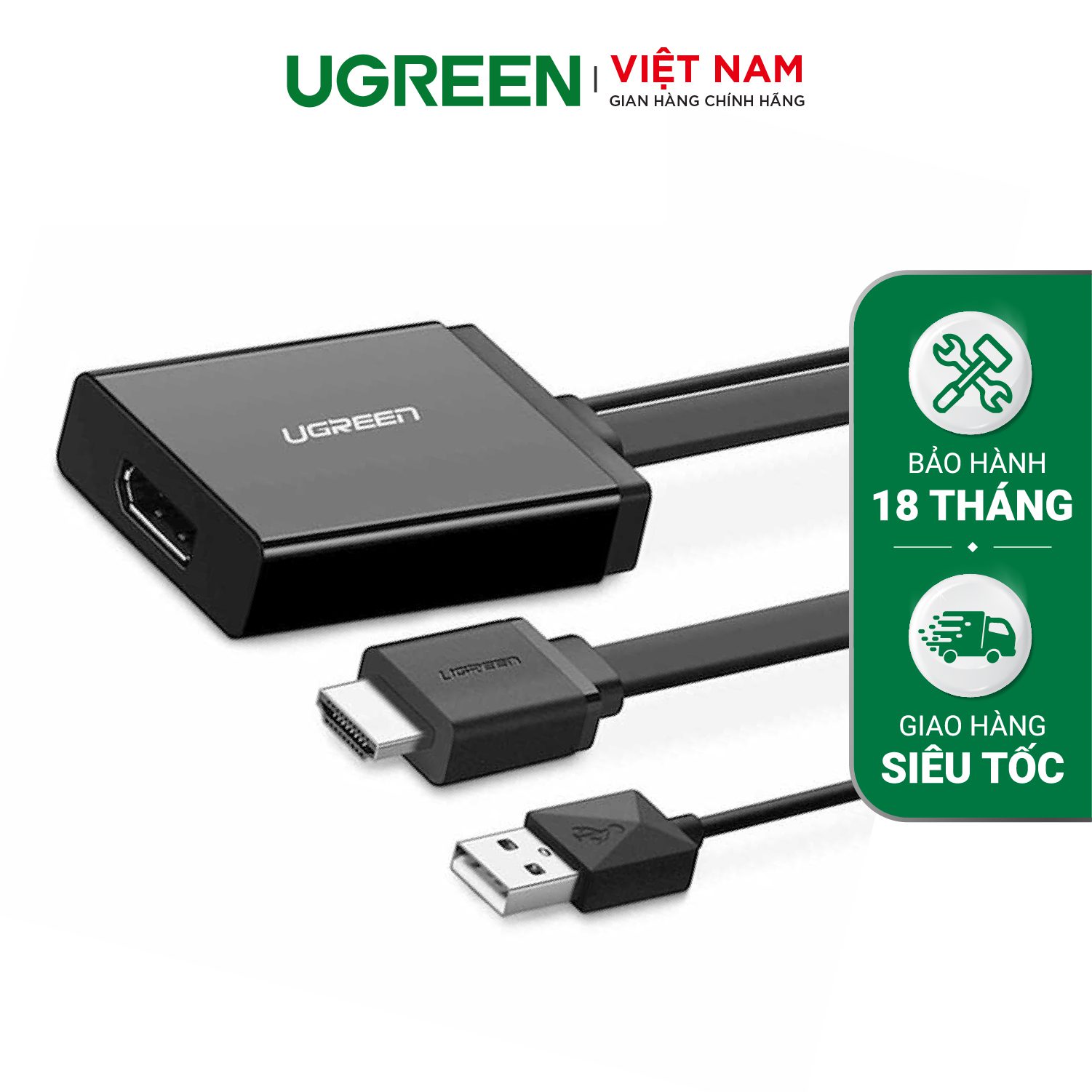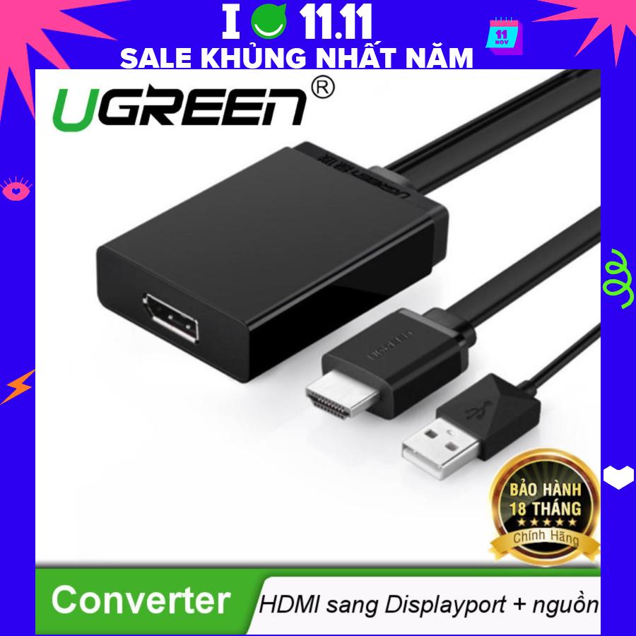 Cáp chuyển đổi HDMI đầu đực + USB 2.0 đầu đực (hỗ trợ nguồn) sang Displayport đầu cái hỗ trợ 4K, dài 50cm MM107 là sản phẩm chính hãng UGREEN
