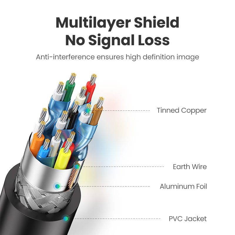 - Ba Lớp Chống Nhiễu: Dây nối đất, lá nhôm và bện kết hợp để chặn nhiễu EMI và đảm bảo truyền tín hiệu ổn định.