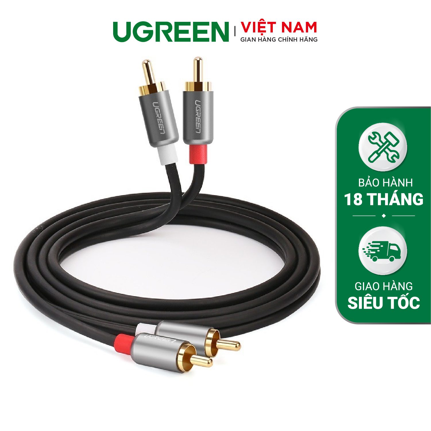 Cáp hoa sen UGREEN AV104 – 2 đầu hoa sen 2RCA đực sang 2RCA đực chuyển tín hiệu âm thanh từ Tivi DVD CD player… ra Loa Amplifier