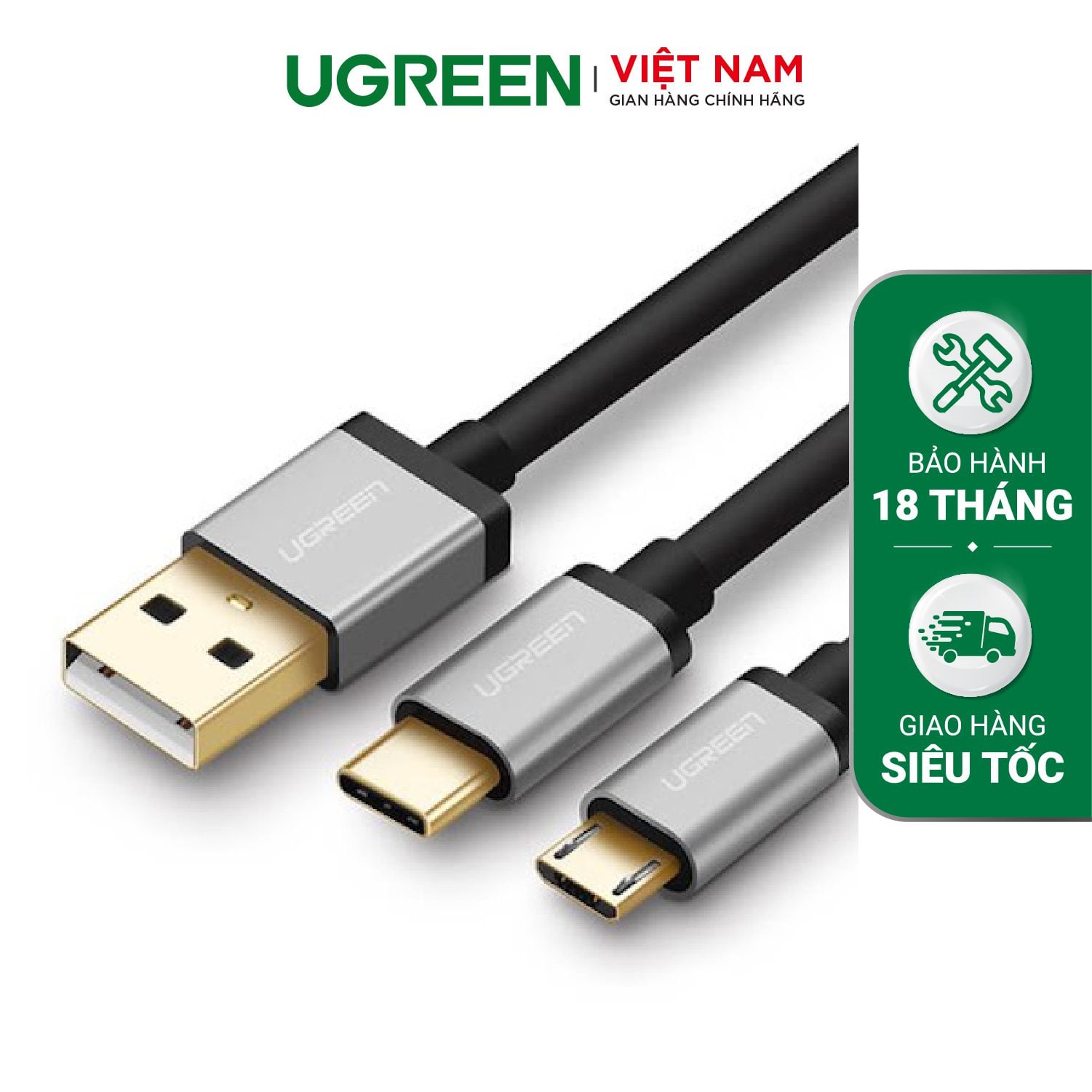 - Cáp sạc và truyền dữ liệu 2 in 1: 1 cổng Micro USB và 1 USB-C