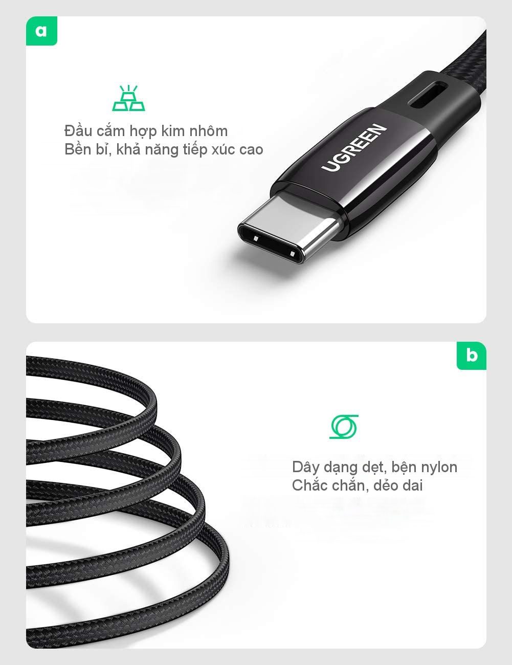 Trải nghiệm sự cân bằng hoàn hảo giữa tốc độ, hiệu suất và an toàn với dây sạc nhanh UGREEN US331 Type C PD60W. Dù bạn là một chuyên gia bận rộn, một người đam mê công nghệ, hay chỉ đơn giản là người coi trọng sự tiện lợi, dây cáp này được thiết kế để đáp ứng tất cả nhu cầu sạc của bạn một cách chính xác và đáng tin cậy. Tạm biệt việc sạc chậm và chào đón tương lai với nguồn năng lượng luôn trong tầm tay. Chọn UGREEN US331 để có trải nghiệm sạc nhanh chóng, hiệu quả và luôn đáng tin cậy.]