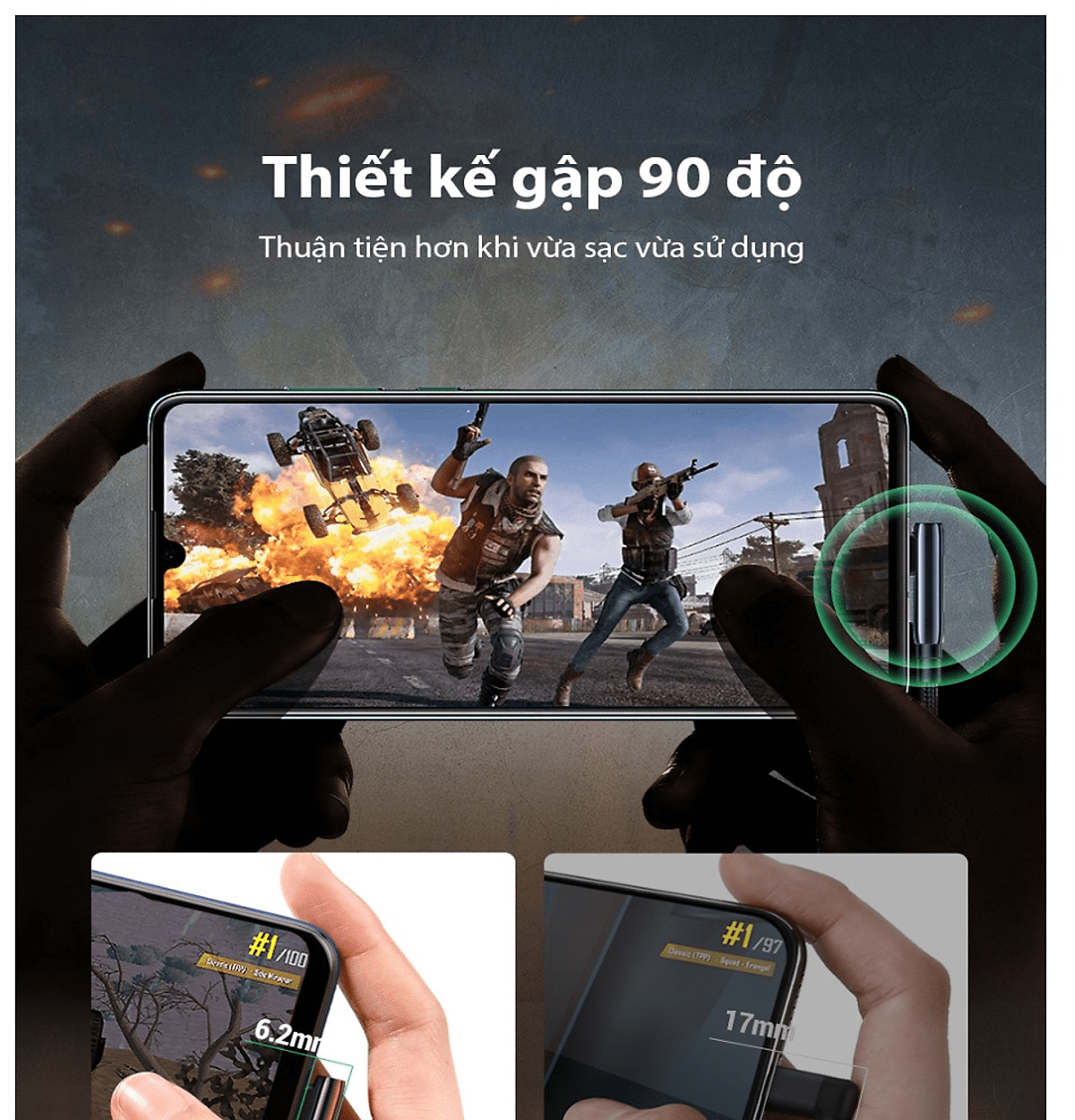 - Thiết kế bẻ góc 90 độ giúp cho việc vừa chơi vừa sạc thuận thiện hơn