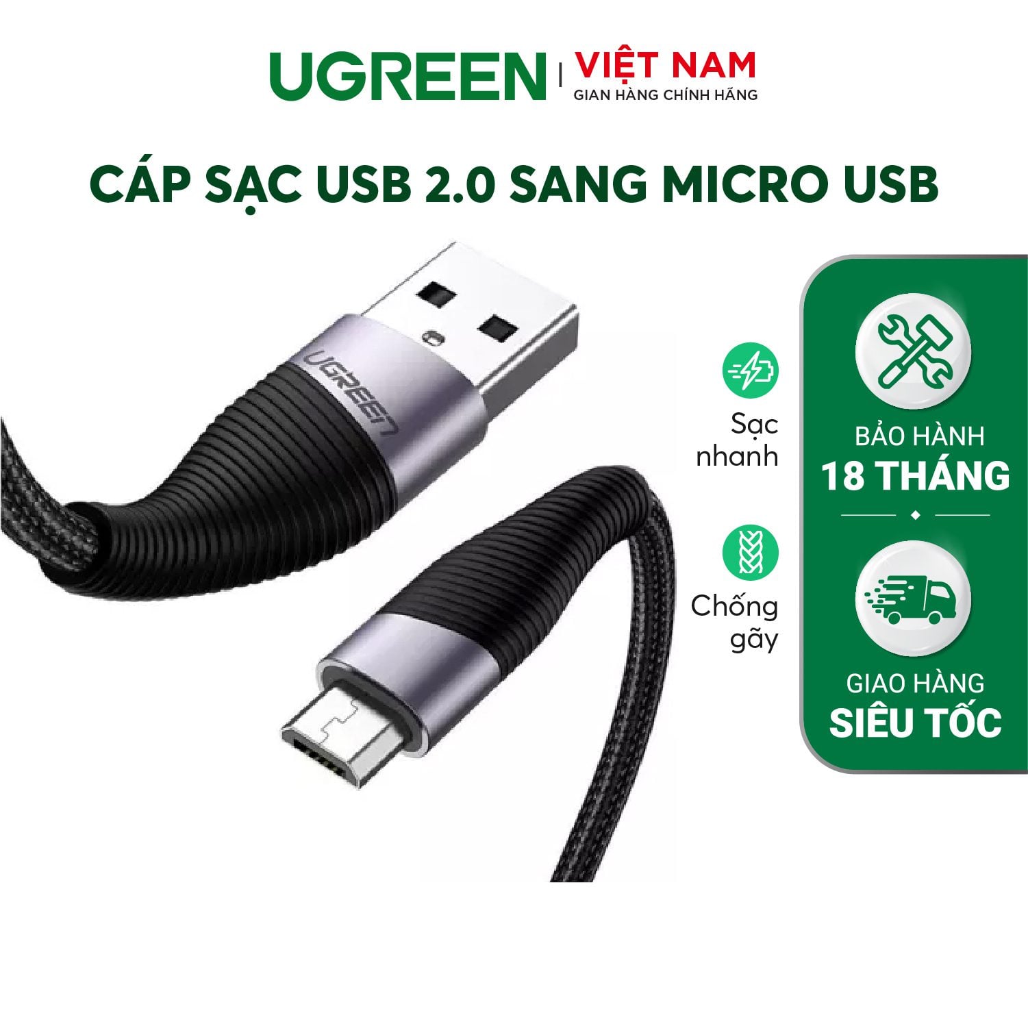 - Cáp sạc và truyền dữ liệu nhanh cho điện thoại Android USB 2.0 sang Micro USB