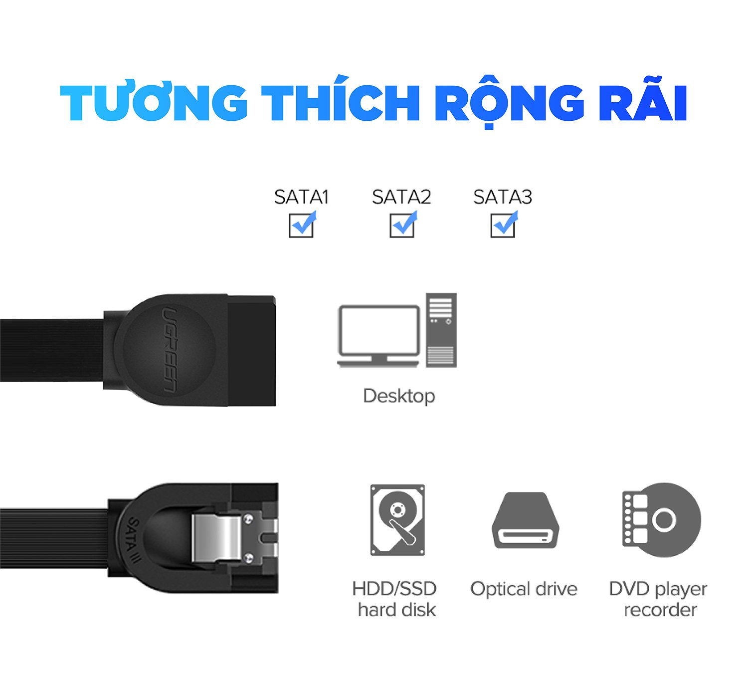 - Sợi cáp tiêu chuẩn26AWG, tương thích chuẩn SATA 2.0 và SATA 1.0