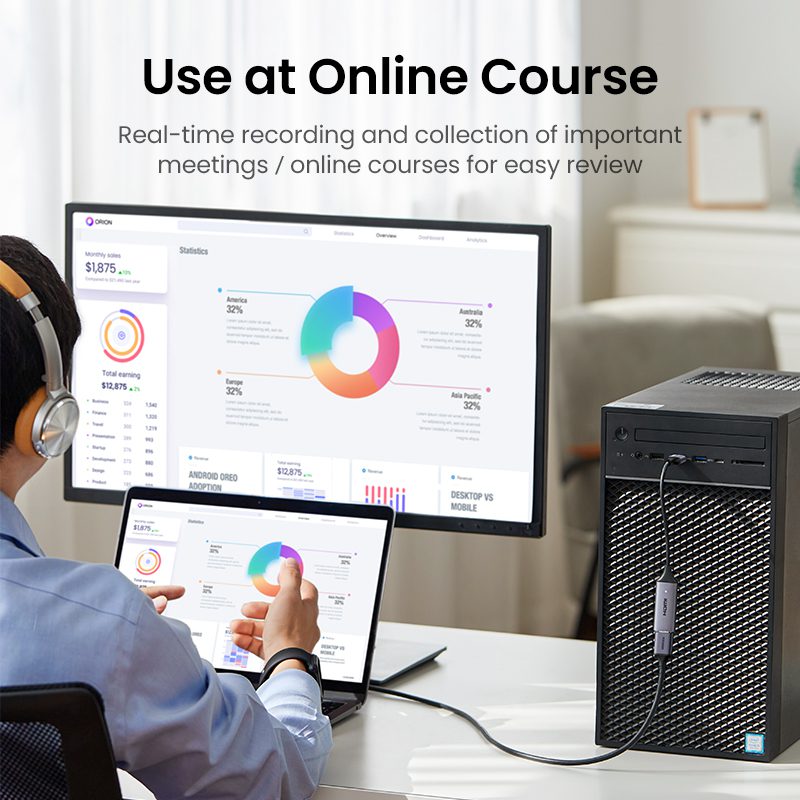 Card Ghi Hình LiveStream Ugreen CM489 cho phép bạn truyền tải nội dung từ nguồn HDMI sang máy tính, laptop, hoặc thiết bị di động qua cổng USB-A hoặc USB-C, từ đó bạn có thể phát trực tiếp, ghi lại video, hoặc chỉnh sửa nội dung với chất lượng cao. Đây là thiết bị lý tưởng cho các streamer, giáo viên dạy học trực tuyến, và những người tham gia hội nghị video.