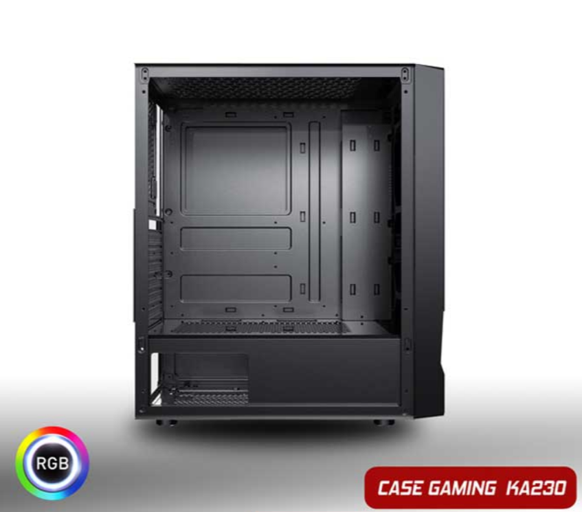 Case VSPTECH Gaming KA230, thiết kế sang trọng cho dòng K series gaming với hệ thống led mặt chính case , case hỗ trợ quạt 120mm, mặt hông kính cường lực 5 ly trong suốt phù hợp cho mod case gaming.