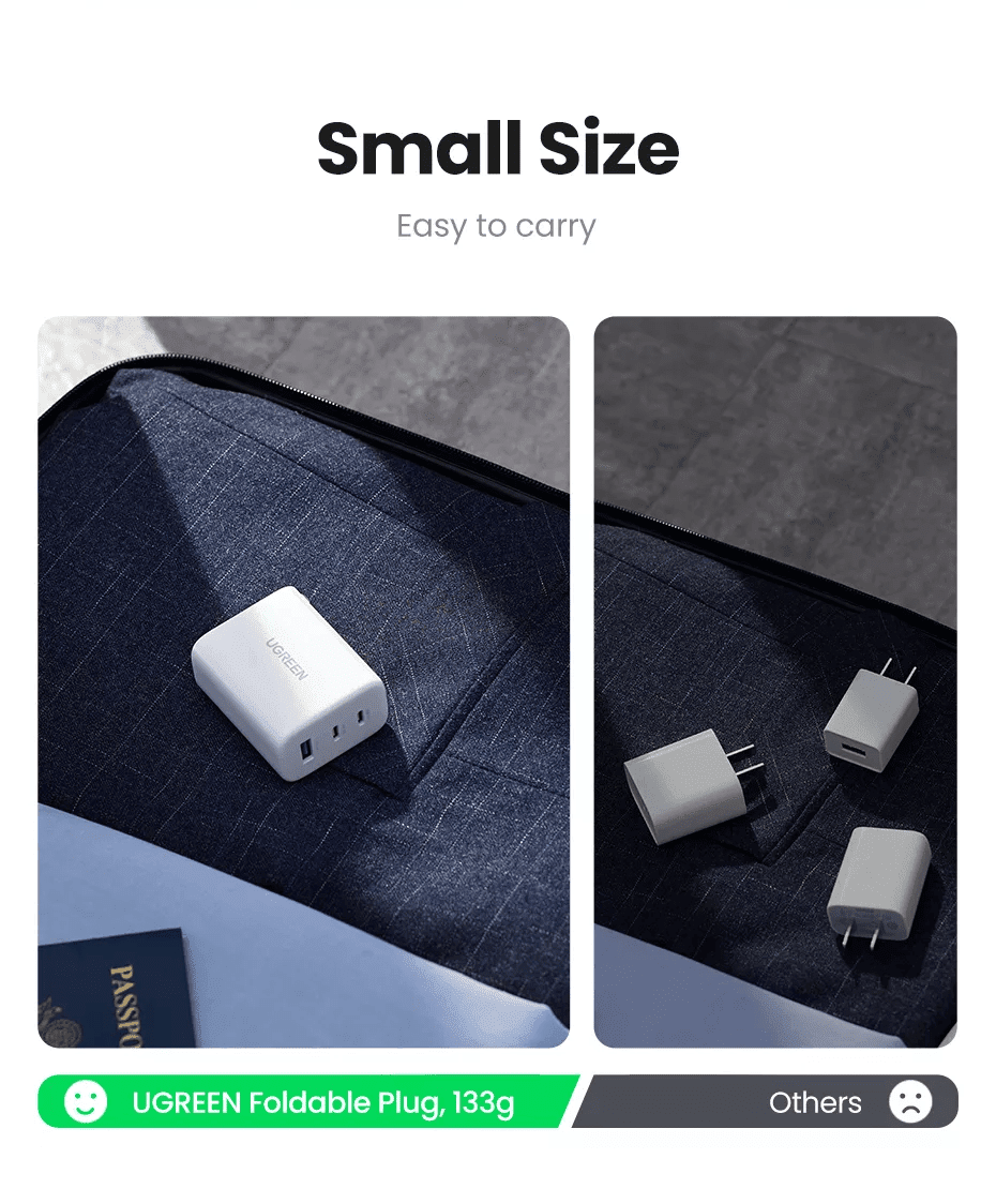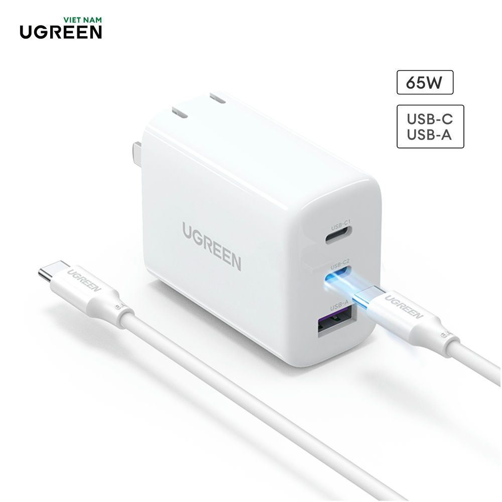 - Sạc UGREEN 65W PD có tính năng sạc nhanh cho 3 thiết bị cùng lúc. Nguồn điện sẽ được phân bổ giữa 3 cổng để đảm bảo khả năng sạc tốt hơn khi kết nối nhiều thiết bị.T