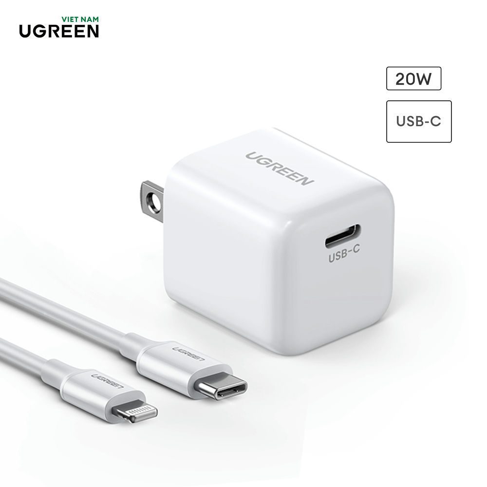 Củ sạc nhanh kèm cáp UGREEN Mini 20W USB C – Khối Sạc Nhanh PD Bộ Chuyển Đổi Nguồn USB-C Tương thích với iPhone 14/14 Plus/14 Pro/14 Pro Max/13/12/11, Galaxy, Pixel, iPad Mini/Pro, Airpods Pro và Hơn