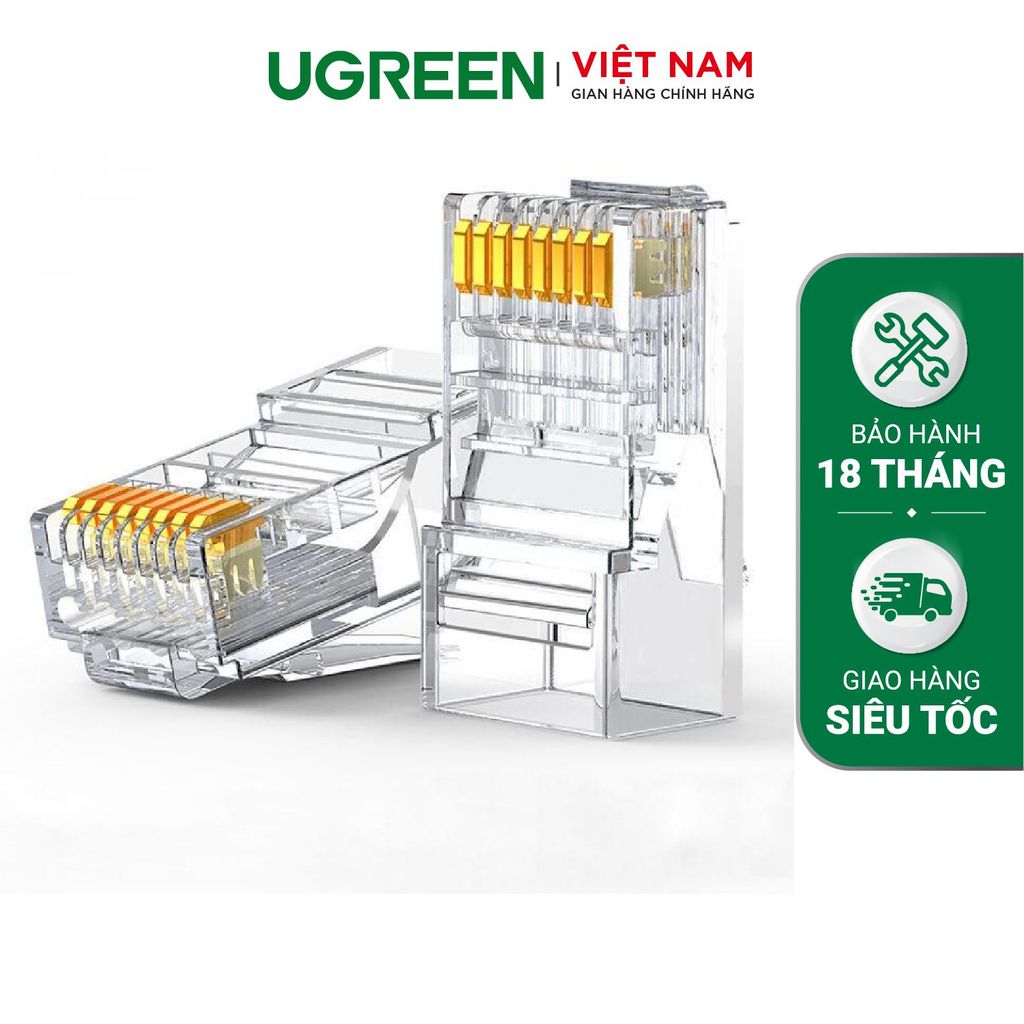 Đầu bấm mạng RJ45 loại tốt Ugreen cao cấp bên trong, tương thích với tất cả các loại cáp mạng cat6, cat6e hiện nay. Với chất liệu cao cấp, hạt mạng ugreen hạn chế tình trạng bị vỡ, gãy trong quá trình bấm dây giúp giảm thiểu tiêu hao tối đa cho các dự án và công trình.
