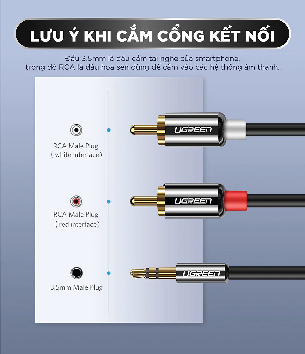 Dây Audio 3.5mm ra 2 đầu RCA (Hoa sen) dài 3M UGREEN AV116 10590