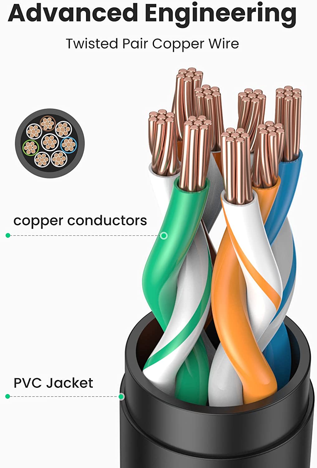 - Được làm từ 100% dây đồng nguyên chất và đầu nối mạ vàng, cáp này giảm thiểu suy hao tín hiệu, nâng cao tốc độ và độ ổn định của mạng.