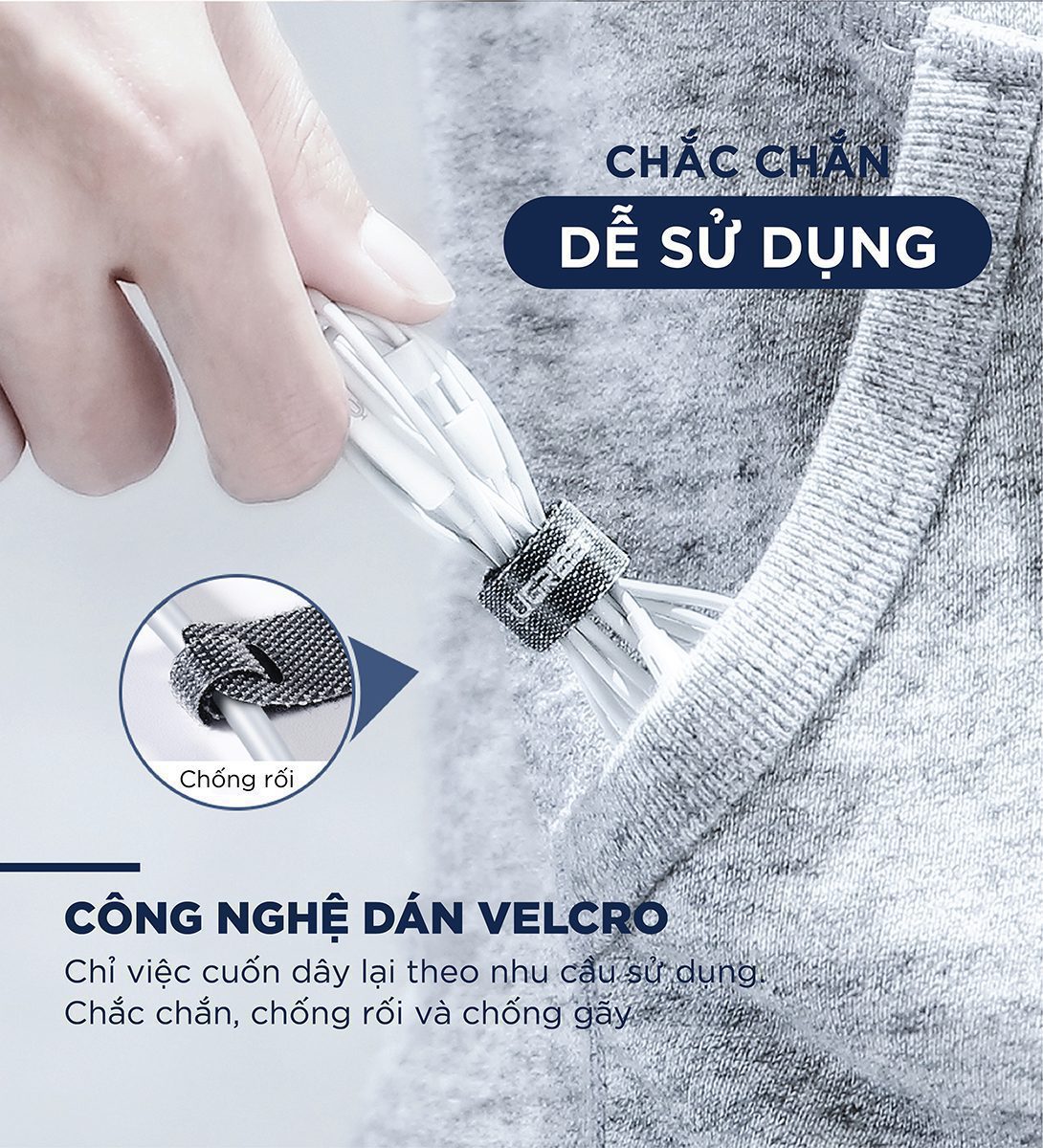 - Dây dán Velcro tiện dụng dùng để buộc các loại dây cho gọn như: dây tai nghe, dây sạc điện thoại, máy tính…