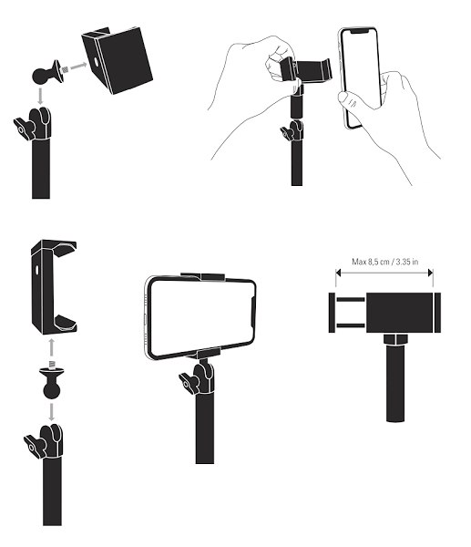 ![]() | Mang đến sự ổn định Elgato Smartphone Holder trang bị đệm cao su và lò xo với khả năng mở rộng đến 85mm mang đến sự ổn định cho smartphone. |