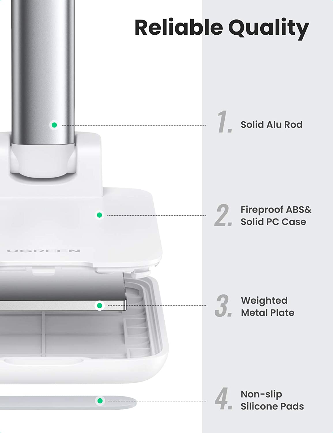 - Thiết kế chắc chắn với đế kim loại, đế đệm miếng silicon bảo vệ chống trơn trượt, không trày xước