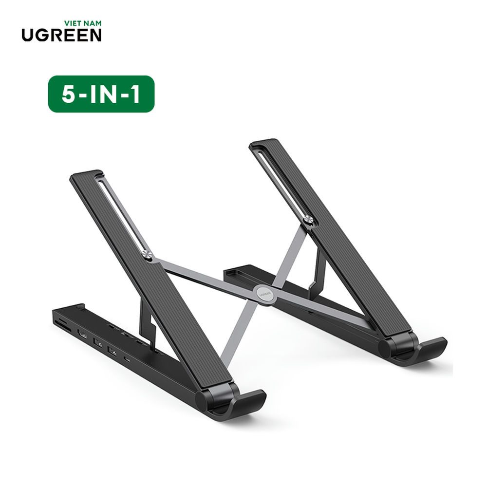 Giá đỡ laptop UGREEN 80551 tích hợp HUB chia cổng HDMI 4K, thẻ SD/TF, USB3.0, USB-C không chỉ giữ cho máy tính xách tay của bạn ở tư thế thoải mái nhưng còn biến nó thành một trạm kết nối đa chức năng.