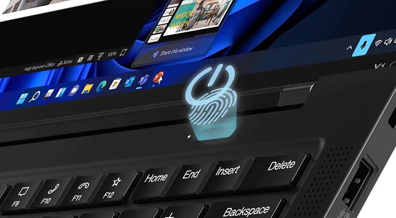 Hỗ trợ cảm biến vân tay Laptop Lenovo ThinkPad X1 Gen 10 hỗ trợ mở khóa nhanh chóng chỉ bằng một cái chạm nhẹ thông qua cảm biến vân tay được tích hợp trên nút nguồn | ![]() |