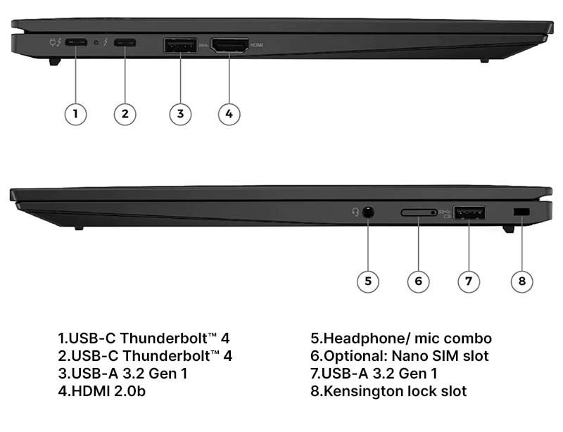 ![]() | Kết nối đa dạng Laptop Lenovo ThinkPad X1 Gen 10 trang bị các kết nối hiện đại như cổng USB 3.2 Type-A, Type-C và HDMI giúp việc sao lưu dữ liệu cùng kết nối với các thiết bị ngoại vi trở nên dễ dàng hơn. |