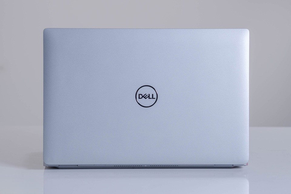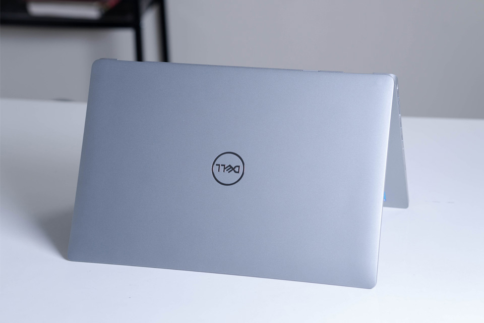 Logo Dell mạ Crom được đặt chính giữa phần mặt lưng, càng tôn lên sự nổi bật. Các góc cạnh máy hơi được bo tròn. Giúp cho nó trở nên mềm mại và thanh lịch hơn. Bao phủ toàn bộ máy là một màu xám bạc lịch lãm.