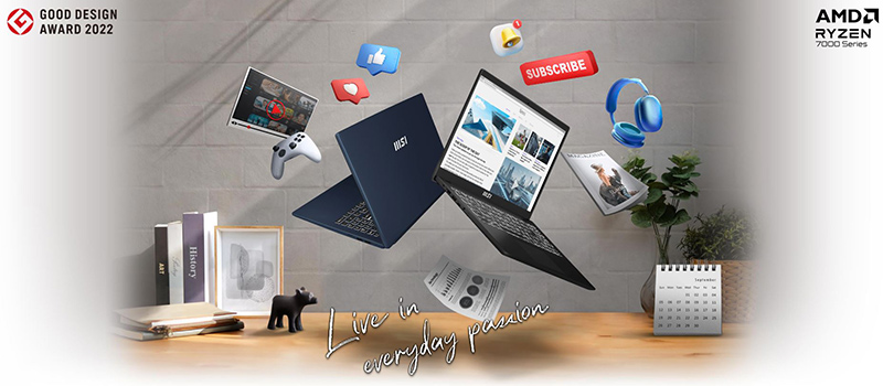 Laptop MSI Modern 15 B7M-231VN mang đam mê của bạn bắt nhịp với lối sống năng động. Dù là đang làm việc hay sử dụng trên giảng đường, vi xử lí AMD Ryzen 7000 series mới nhất và card đồ họa tích hợp Modern series cũng sẽ đáp ứng mọi nhu cầu của bạn.