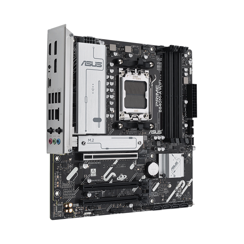 Mainboard PRIME B840M-A WIFI-CSM hỗ trợ Socket AMD AM5, tương thích với các bộ vi xử lý AMD Ryzen™ 9000, 8000 và 7000 Series, mang lại hiệu năng mạnh mẽ cho mọi nhu cầu từ chơi game đến làm việc.
