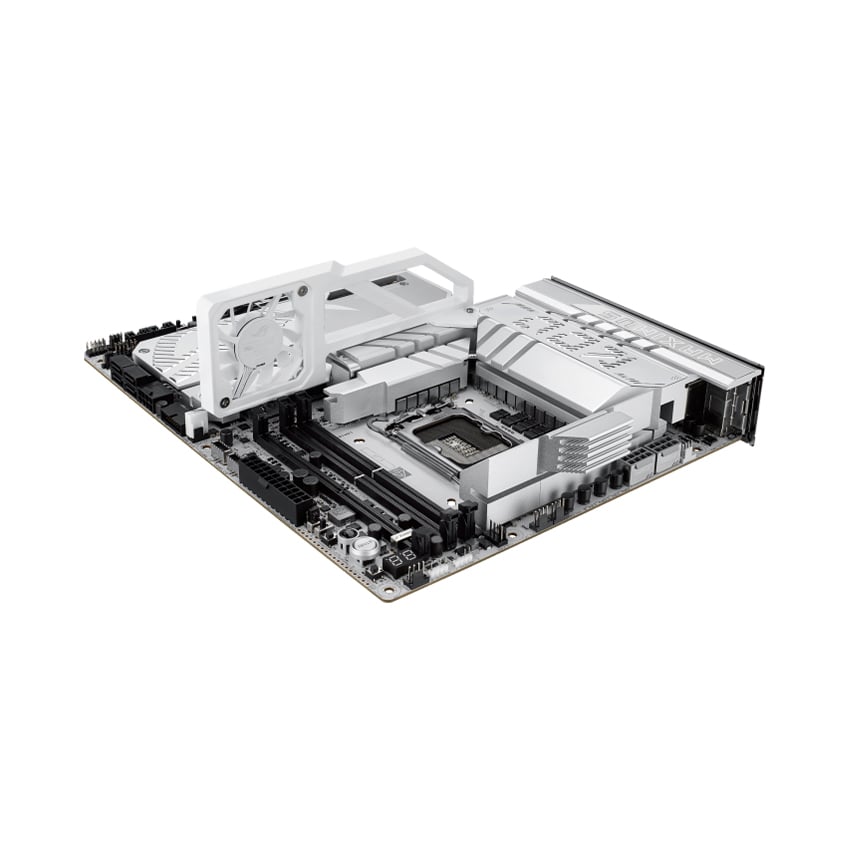 Ngoài hiệu suất mạnh mẽ, ROG Maximus Z890 Apex còn được chú trọng đến yếu tố thẩm mỹ. Với bề mặt màu xám sỏi, các chi tiết kim loại được đánh bóng và những đường nét thanh lịch, bo mạch này tạo nên một tổng thể chủ đạo với gam màu bạc sang trọng, phù hợp cho những ai yêu thích phong cách nhẹ nhàng trong thiết kế máy tính của mình.