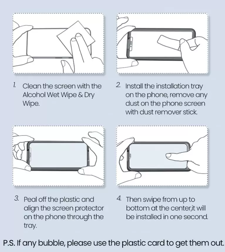 Dễ dàng tự lắp đặt (bộ sản phẩm đã bao gồm đầy đủ khăn lau, miếng dán loại bỏ bụi, đặc biệt là có khung căn chỉnh)