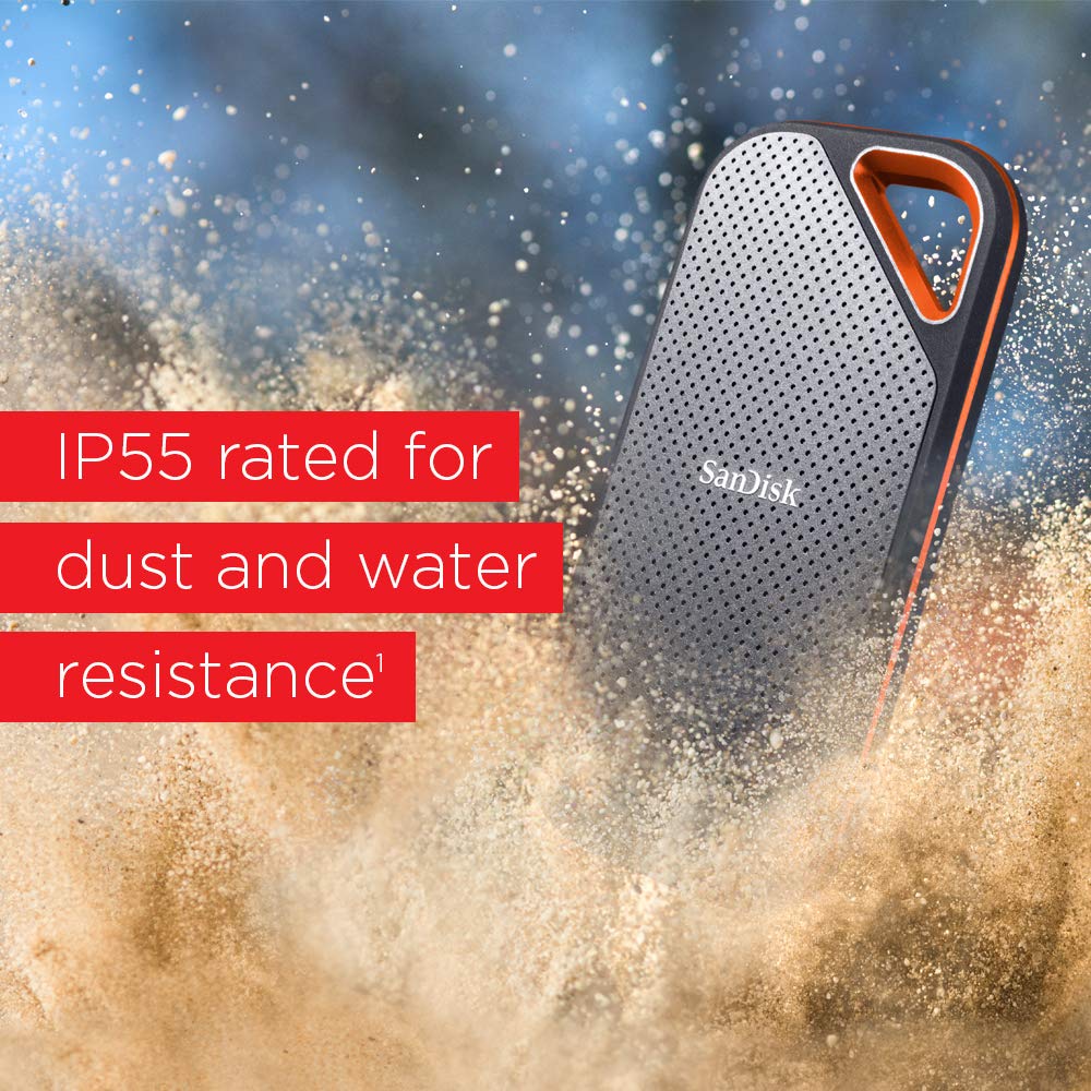 Độ bền cực cao Được thiết kế với một hệ thống đệm lót bằng cao su có độ đàn hồi tốt nhất, khả năng chống nước IP55 và đặc biệt không sử dụng hệ thống cơ quay, ổ cứng SSD di động SanDisk Extreme Pro V2 E81 chống shock, chống rung cực tốt, có thể chịu được mưa và bụi giúp bảo về an toàn cho dữ liệu của bạn. | ![]() |