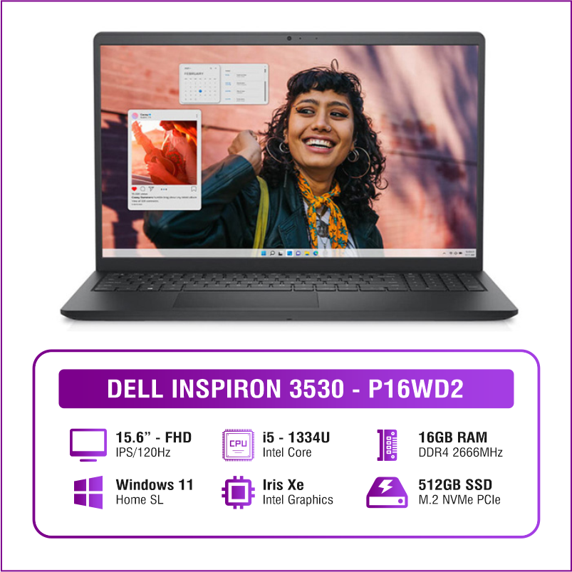 Laptop Dell Inspiron 3530 P16WD2 – RAM 16GB, màn hình 120Hz, hiệu năng mạnh mẽ cho công việc & học tập