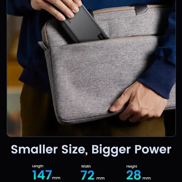 - Thiết kế nhỏ gọn: Kích thước 147x72x27mm, dễ dàng mang theo và vừa vặn trong túi xách, balo hay thậm chí là túi áo khoác.