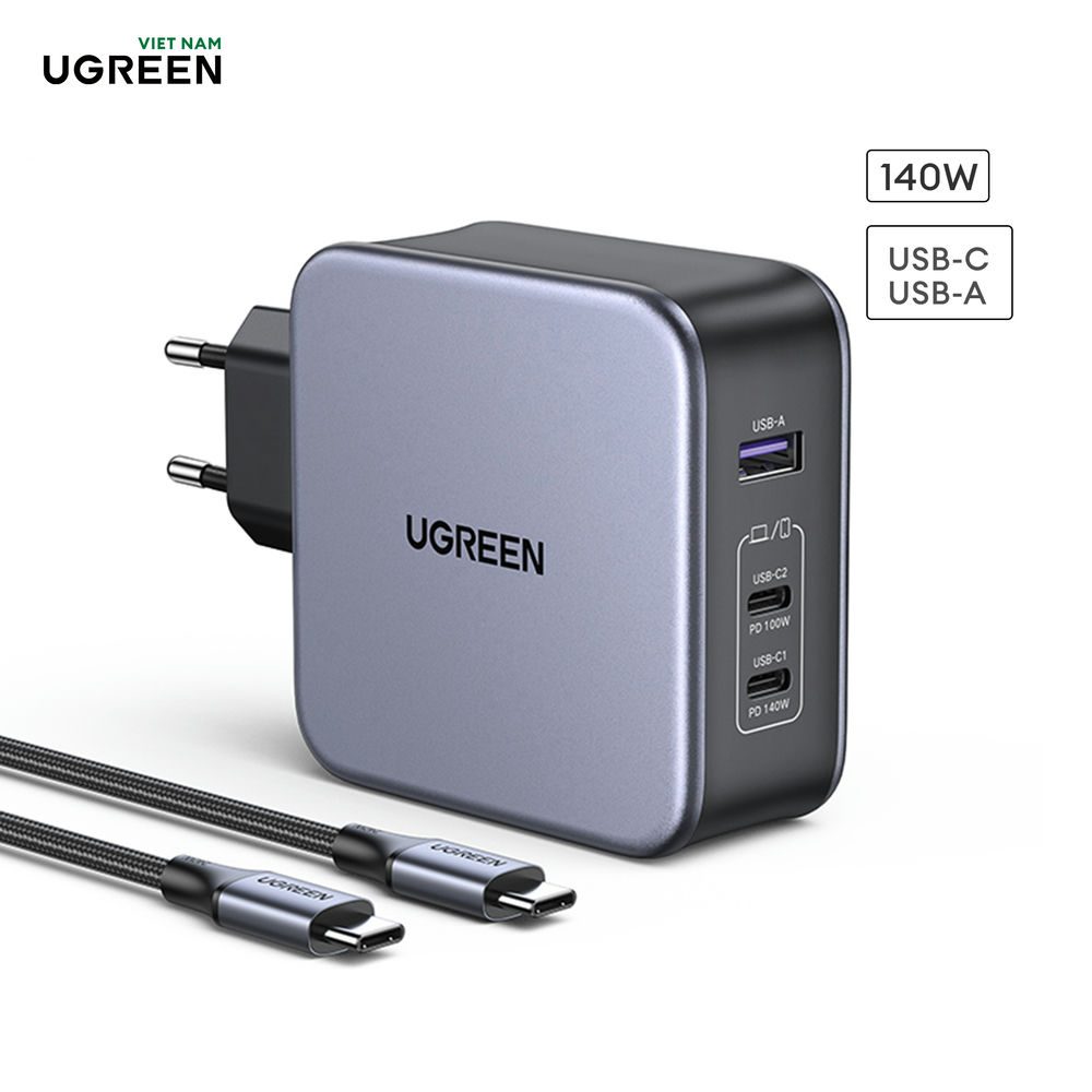 Bộ sạc nhanh 140w chân tròn Ugreen CD289 là bộ sạc cao cấp công nghệ GaN cho hiệu suất sạc cao và bảo vệ an toàn