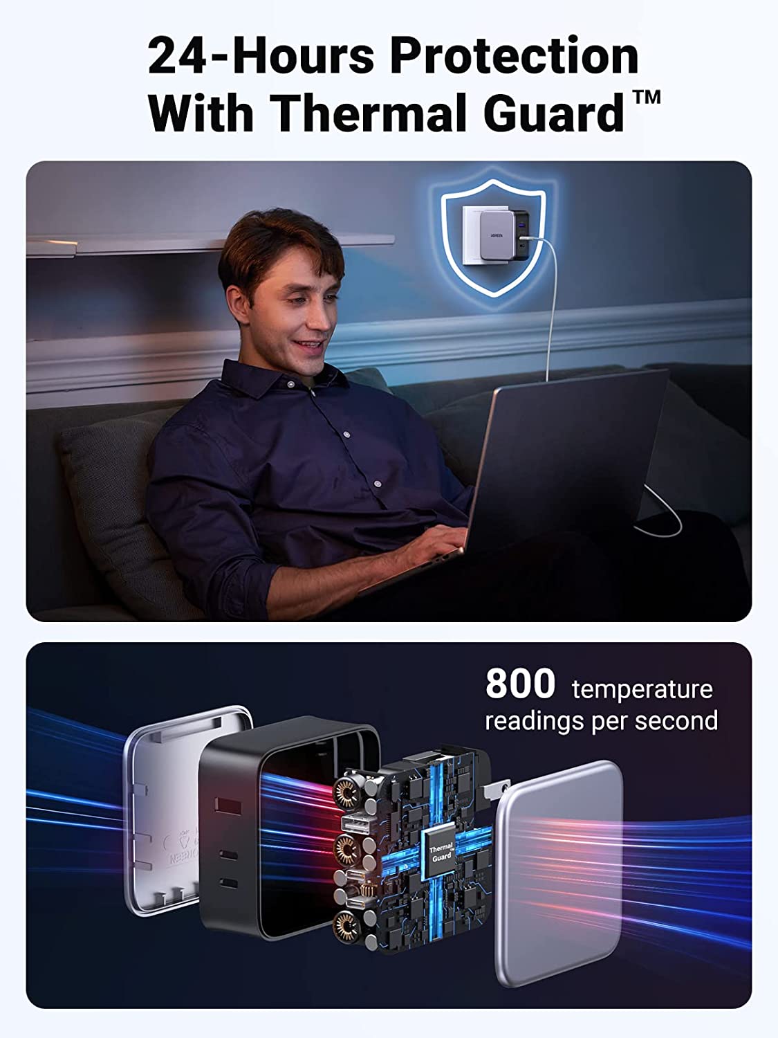 An toàn và bền bỉ: Hệ thống phân phối điện điều chỉnh thông minh đầu ra nguồn để bảo vệ pin thiết bị và cải thiện tuổi thọ pin. Hệ thống Thermal Guard quét nhiệt độ 800 lần mỗi giây, bảo vệ thiết bị của bạn không bị quá nóng.