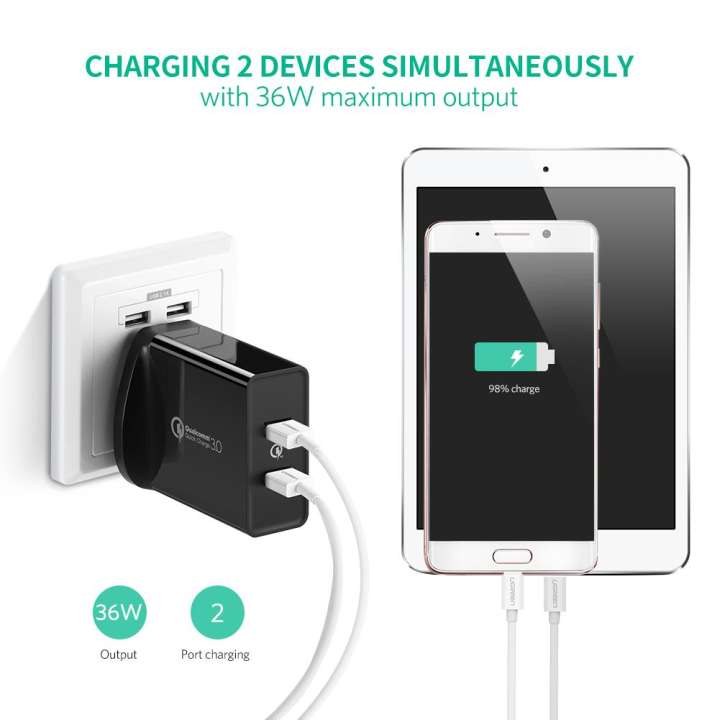 - Củ sạc nhanh QC 3.0 hỗ trợ 2 cổng