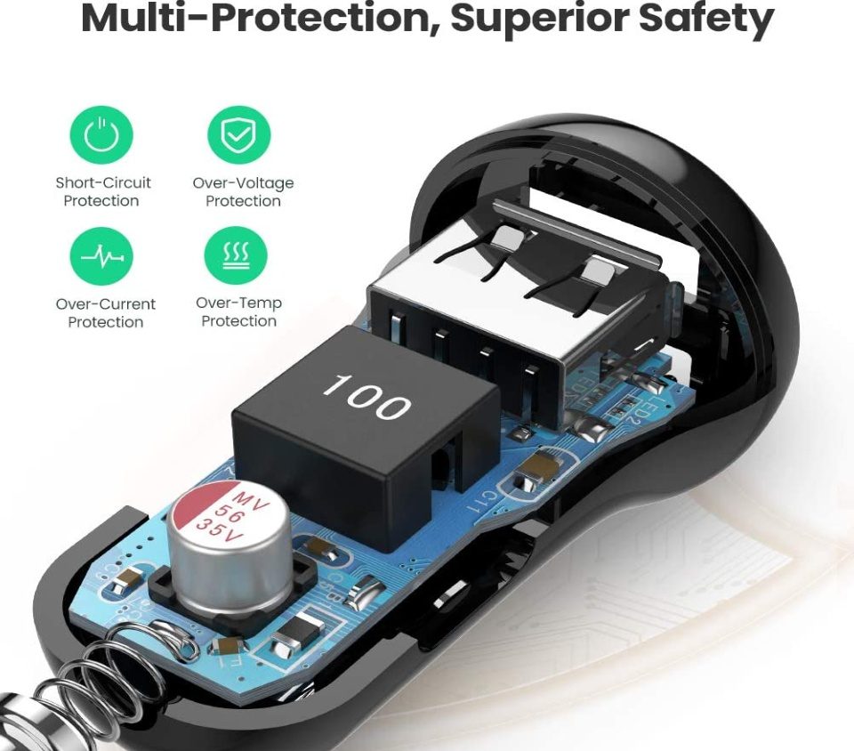 Với chất liệu chất lượng cao và thiết kế tỉ mỉ, UGREEN ED018 bảo vệ tối đa cho bạn và thiết bị của bạn. Nó bảo vệ chống quá áp, quá nhiệt, quá dòng và tĩnh, mang lại sự yên tâm khi bạn đang lái xe.