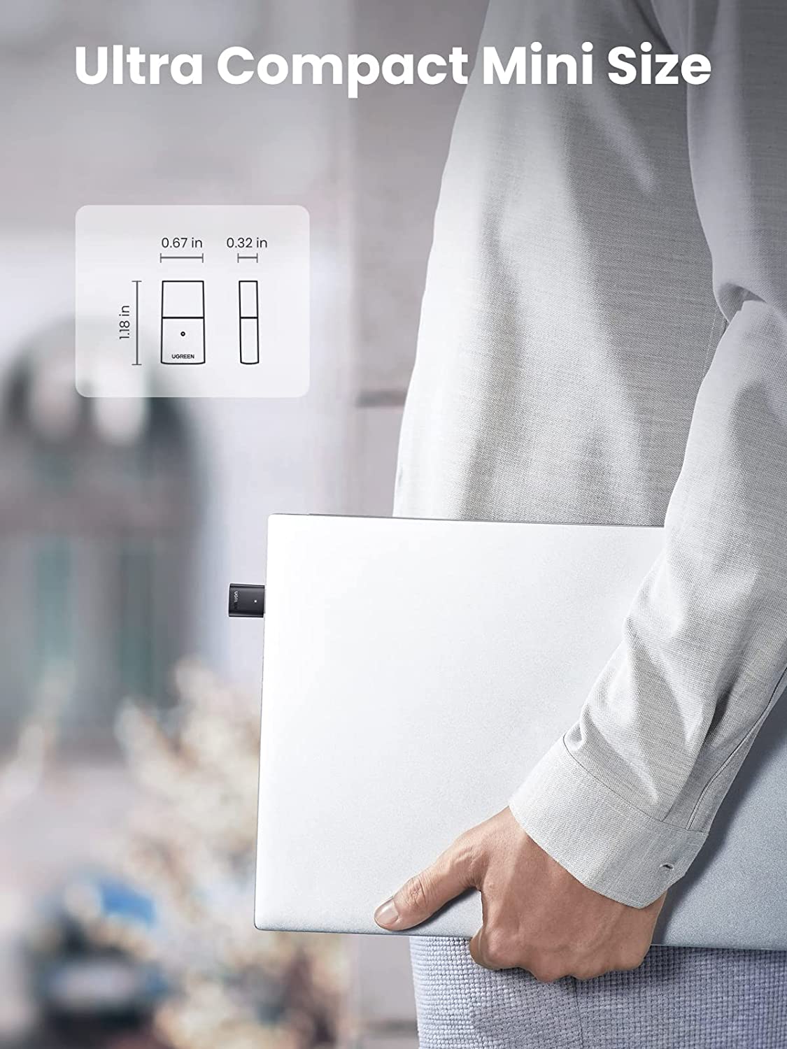 Kích thước nhỏ gọn và tiện lợi: USB Bluetooth Ugreen được thiết kế nhỏ và nhẹ chỉ có kích thước 2IN*1IN*0,5IN. Nó hoàn toàn không can thiệp vào bất kỳ thứ gì khác mà bạn cắm vào, đồng thời làm cho máy tính của bạn trông gọn gàng vì kích thước nhỏ.